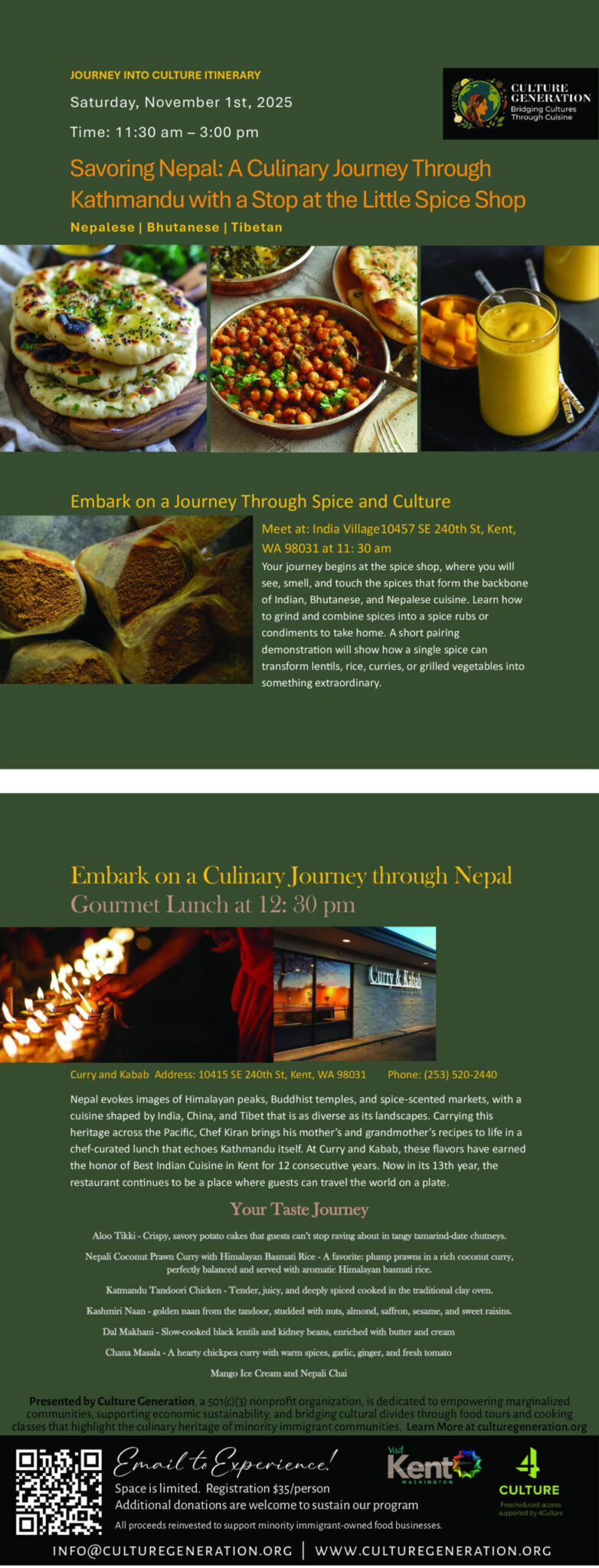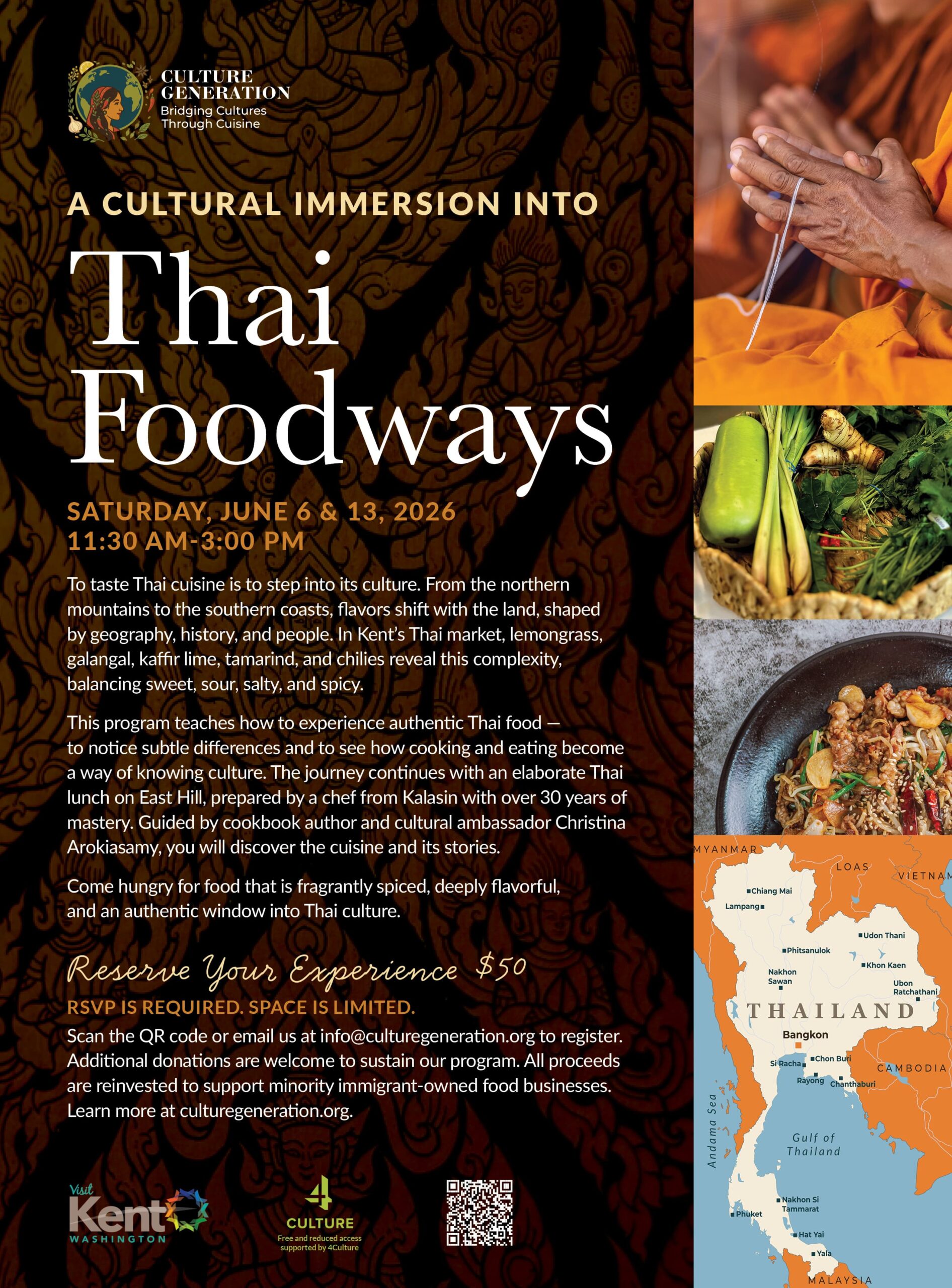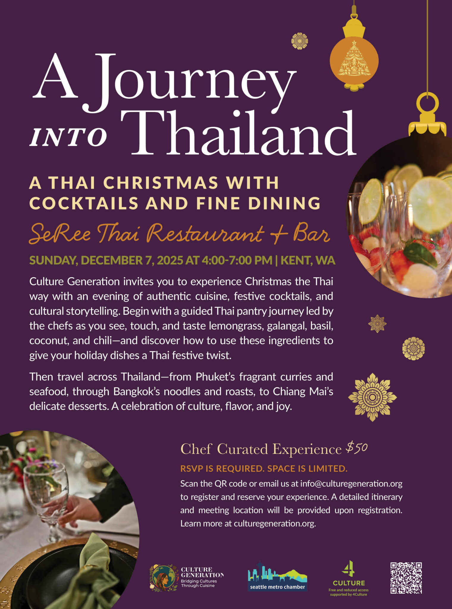 At Culture Generation, our mission is to foster a deep connection, education, and engagement among the public with the rich and diverse cultural heritages of immigrant and minority communities in King County. We are committed to the preservation and promotion of these unique cultures through comprehensive heritage arts programs. By focusing on the culinary traditions that define these communities, we strive to ensure the continuity of food culture, celebrating and safeguarding it for future generations.