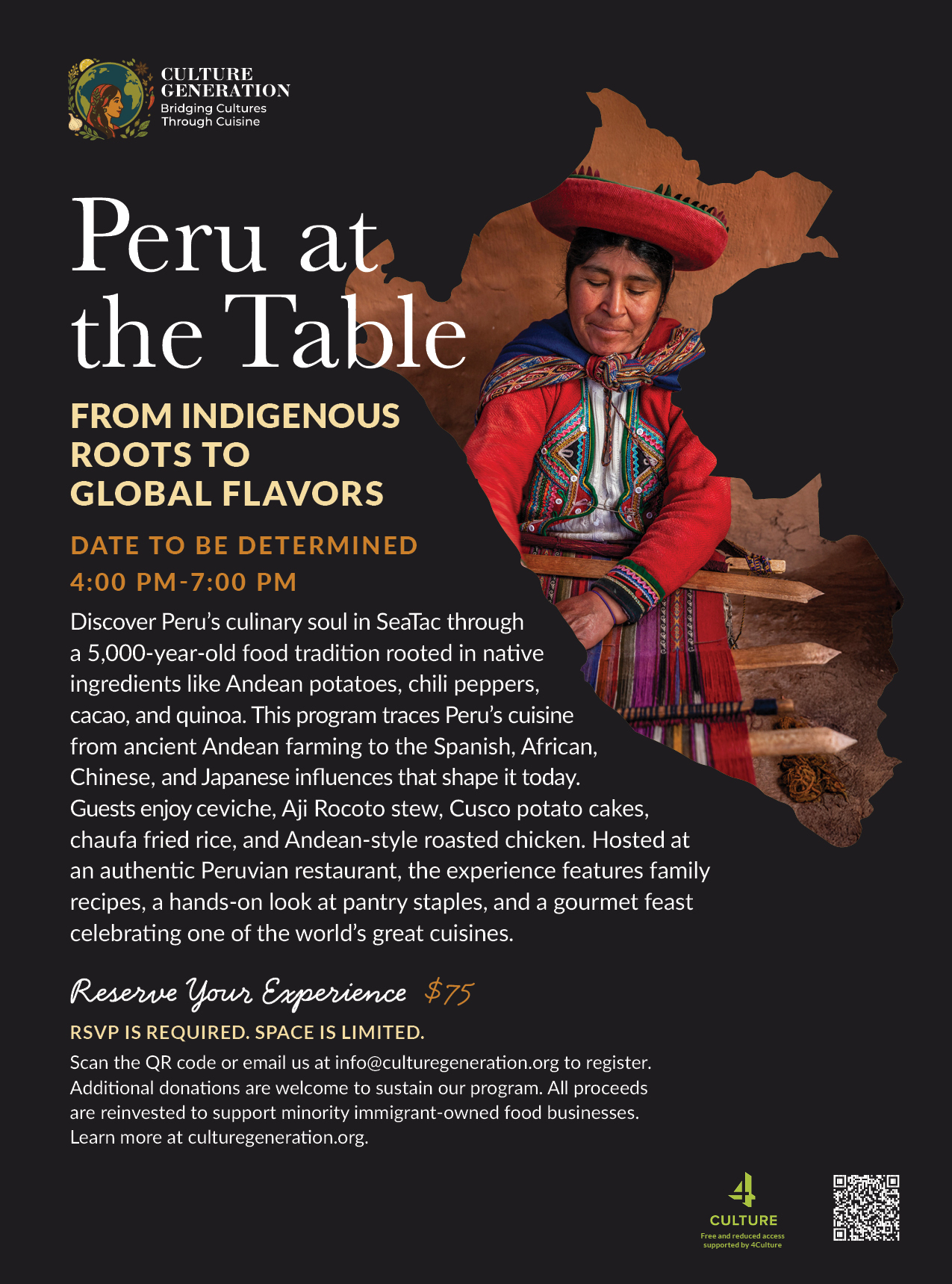 Your $75 registration is invested directly into the local restaurants and markets hosting your experience. Any additional donation helps sustain our broader work to uplift underserved immigrant communities.