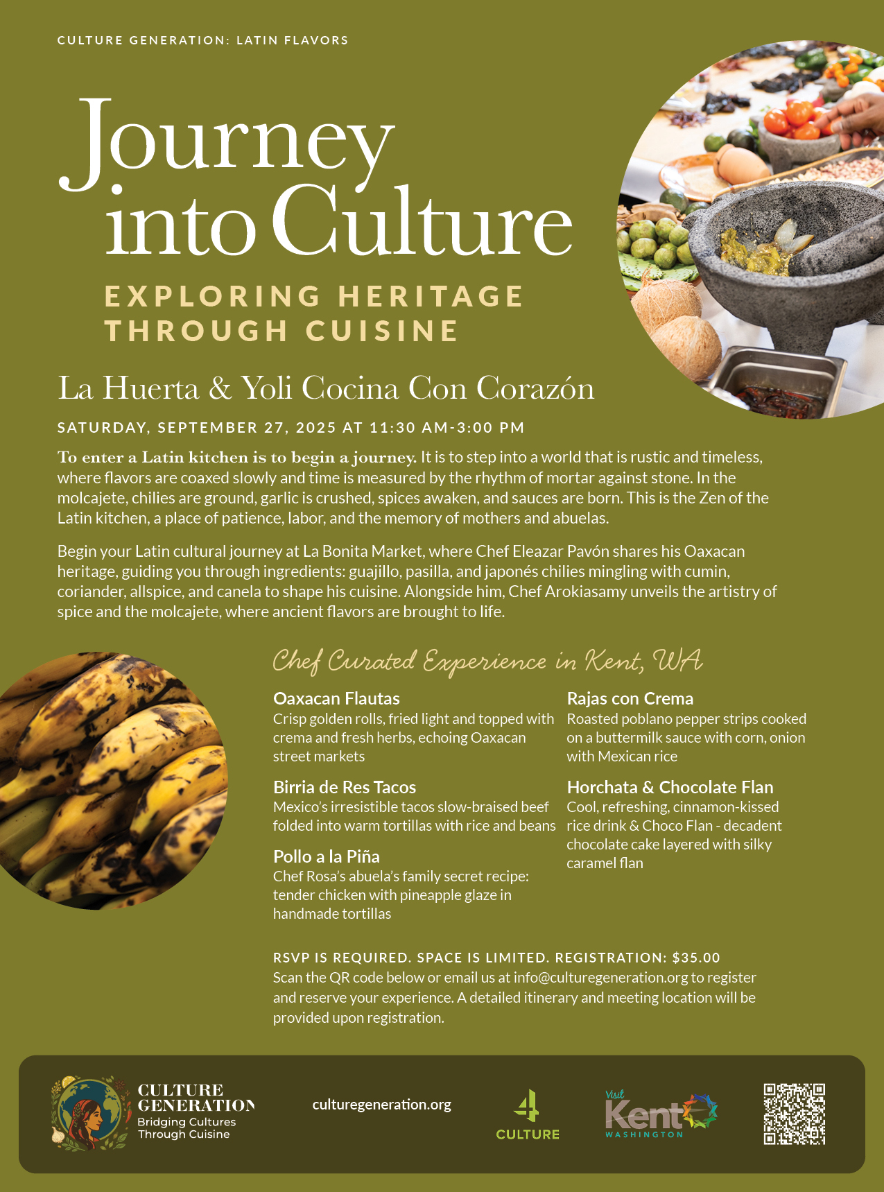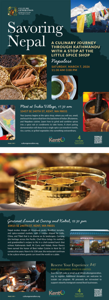 Culture Generation is dedicated to supporting minority-owned immigrant food businesses and BIPOC entrepreneurs in Kent and SeaTac. These businesses are the heartbeat of our community, enriching both its cultural fabric and economic vitality. Through our programs, we bridge the gap between the general public and these often-overlooked culinary gems, celebrating their unique traditions and stories.